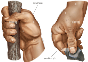 - Get a firm grip, engage the little finger (power grip) as it is connected to the larger muscles)